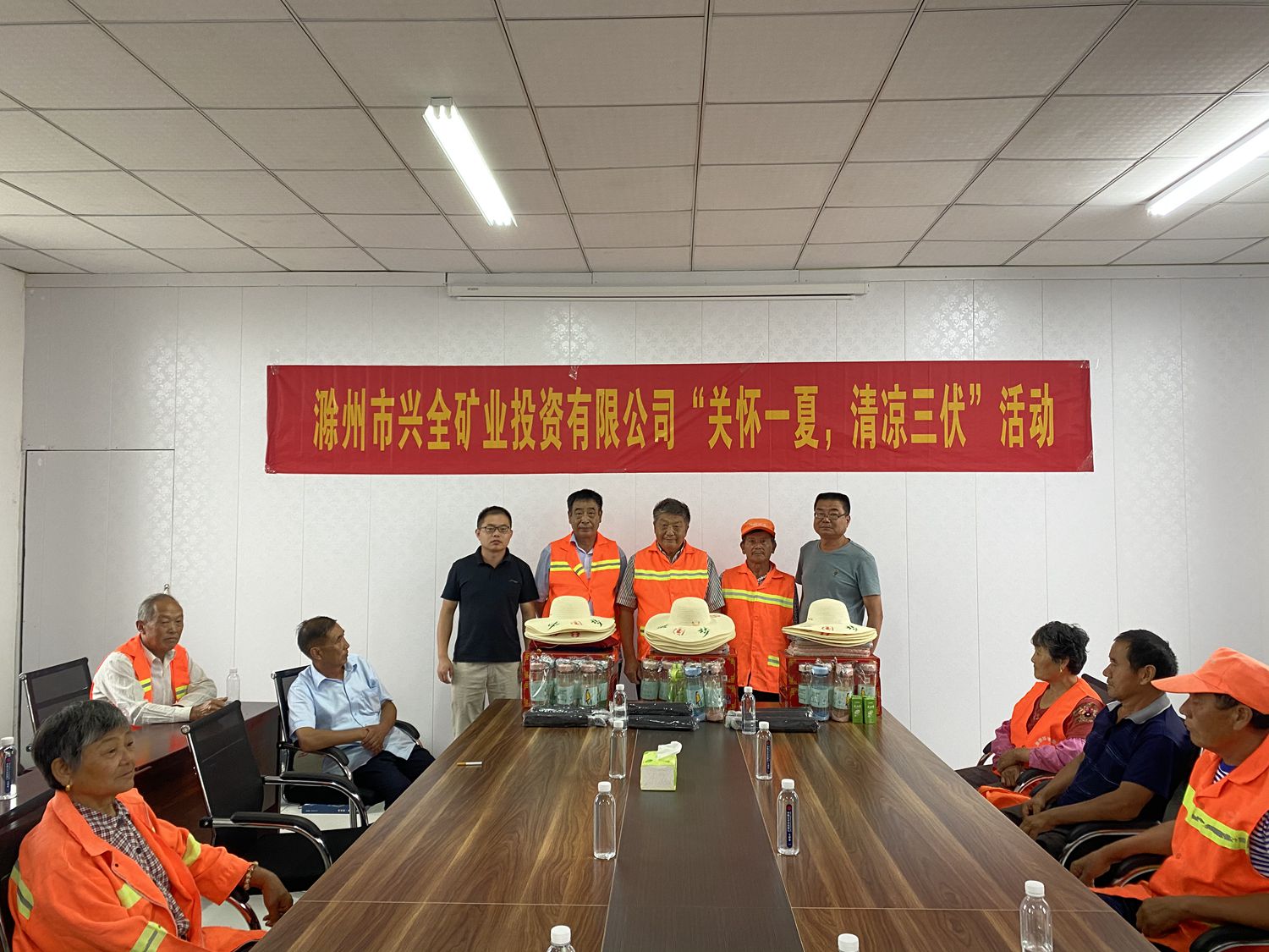 入暑以來,全椒縣持續(xù)高溫,為體現(xiàn)對(duì)高溫下堅(jiān)守在工作一線的環(huán)衛(wèi)工人的關(guān)心,興全礦業(yè)于7月26日聯(lián)合全椒縣六鎮(zhèn)鎮(zhèn)草庵村、鄭橋村和孫家新村三個(gè)村企聯(lián)建點(diǎn)開展“關(guān)懷一夏,清涼三伏”夏日送清涼活動(dòng)。六鎮(zhèn)鎮(zhèn)人大主席羅玉軍、興全礦業(yè)總經(jīng)理陳昌富及草庵村、鄭橋村和孫家新村的環(huán)衛(wèi)工人代表共計(jì)30余人參加此次活動(dòng)。