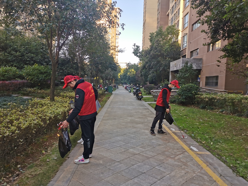 宣傳活動結束后,志愿者們還在社區(qū)開展“雙撿”、清理樓道“牛皮癬”等志愿服務活動。