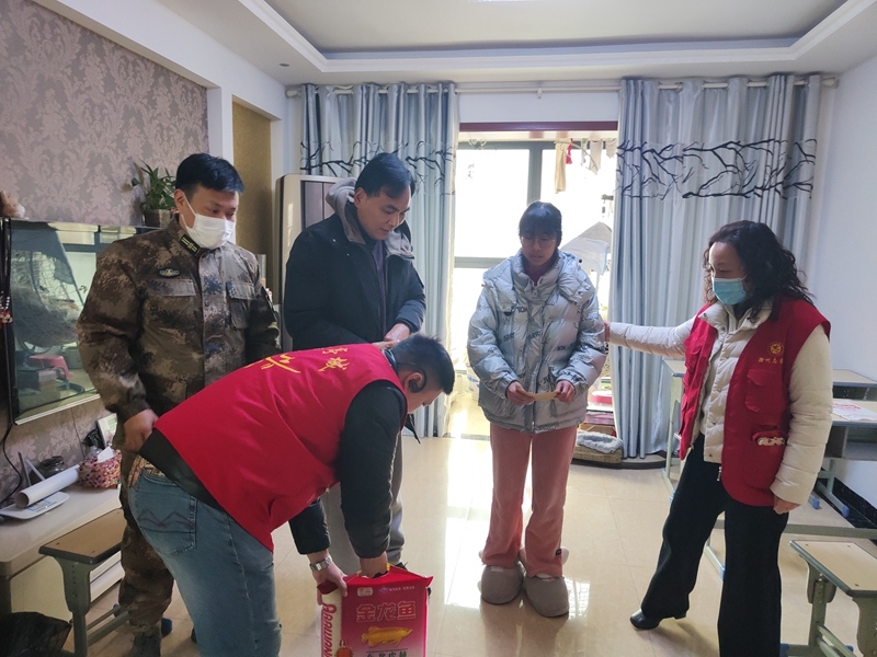 在社區(qū)有關(guān)負(fù)責(zé)同志的陪同下,慰問人員挨家挨戶對困難群體進行了走訪,為他們送去米、油等慰問品和慰問金,并詳細(xì)詢問他們的身體情況、工作和生活現(xiàn)狀,叮囑他們一定要保重身體,鼓勵他們積極面對生活困難、保持健康樂觀的心態(tài)。