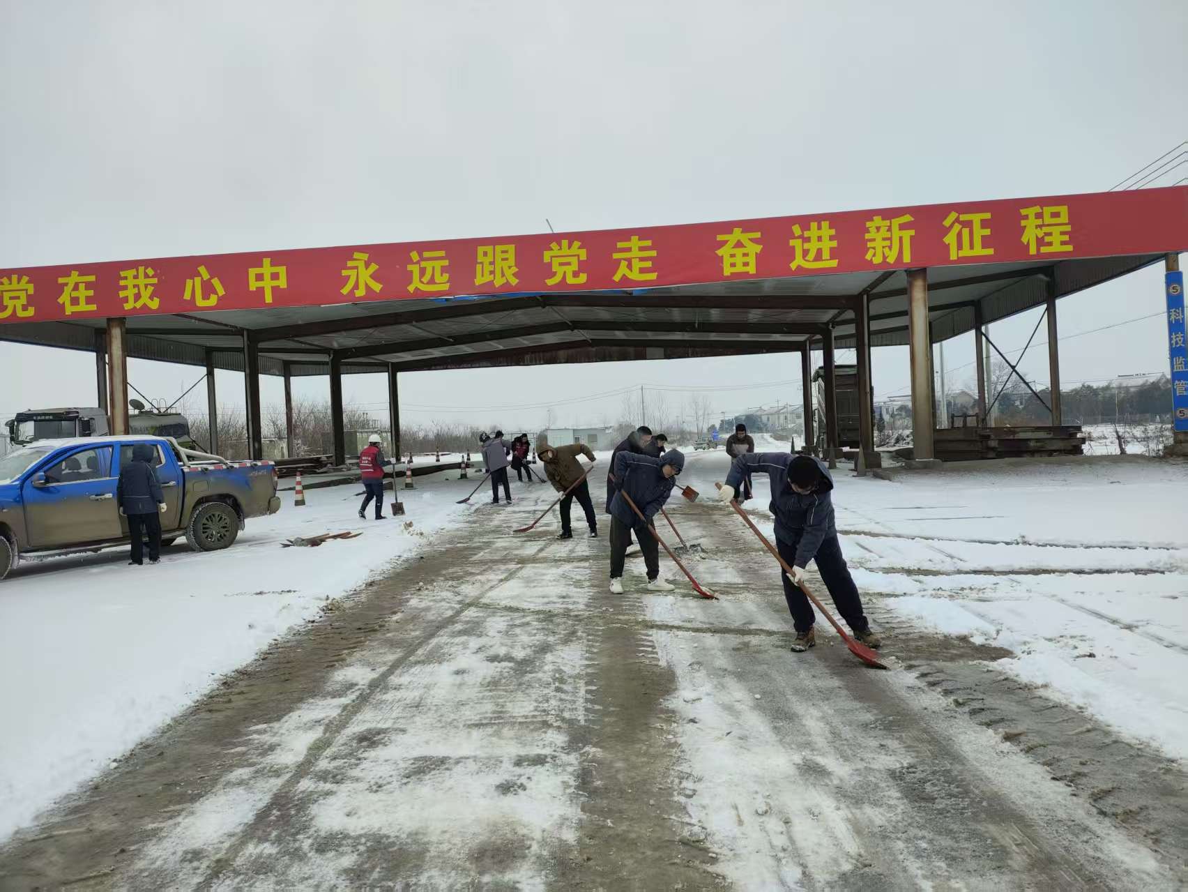 風(fēng)雪之中,集團各級黨組織迅速響應(yīng)。領(lǐng)導(dǎo)干部現(xiàn)場指揮,黨員骨干主動帶頭,職工群眾積極參與。在集團辦公區(qū)、各礦區(qū)主干道及設(shè)備集中區(qū)域,大家齊心協(xié)力,冒著嚴寒清掃積雪。重點對礦區(qū)關(guān)鍵通道、作業(yè)平臺和巡檢路線進行了清理,及時為安全生產(chǎn)和職工出行開辟安全通道。