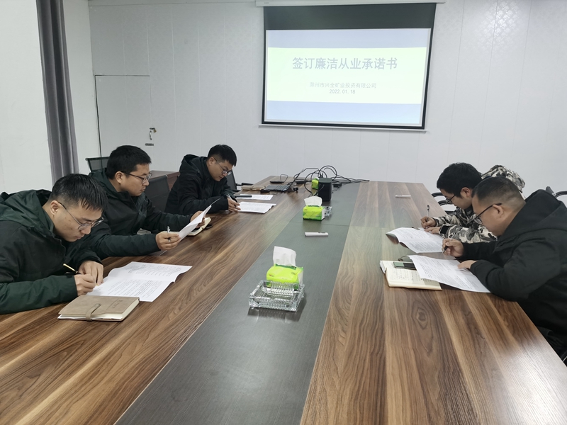 為堅(jiān)決貫徹落實(shí)中央八項(xiàng)規(guī)定精神,進(jìn)一步強(qiáng)化黨風(fēng)廉政建設(shè),筑牢廉潔從業(yè)防線,1月18日,滁州市興全礦業(yè)投資有限公司組織中層管理人員簽訂《廉潔從業(yè)承諾書》。